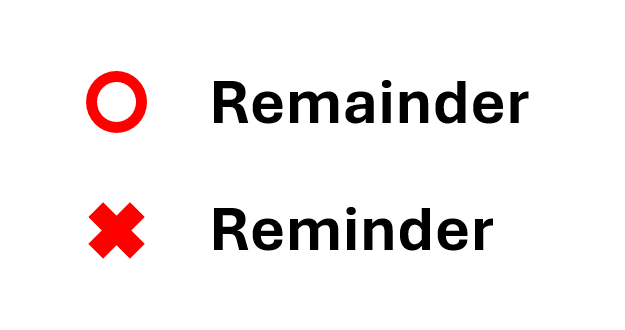 間違いやすいですが、スマホの機能などである「リマインダー」とは「reminder」なので違う単語です。
