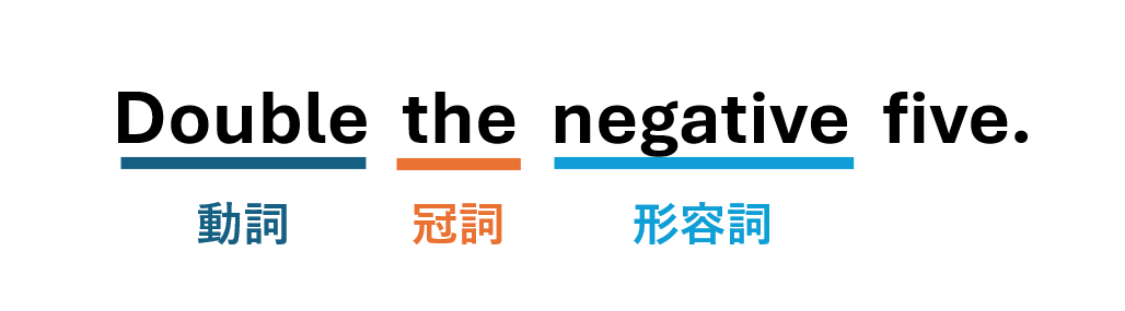 「-5を2倍する」などというように動詞を使うときには、「double the negative five」と表現します。