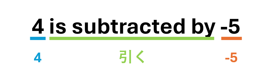 「be subtracted by negative 5」は「be added by 5」とは同じ意味です。