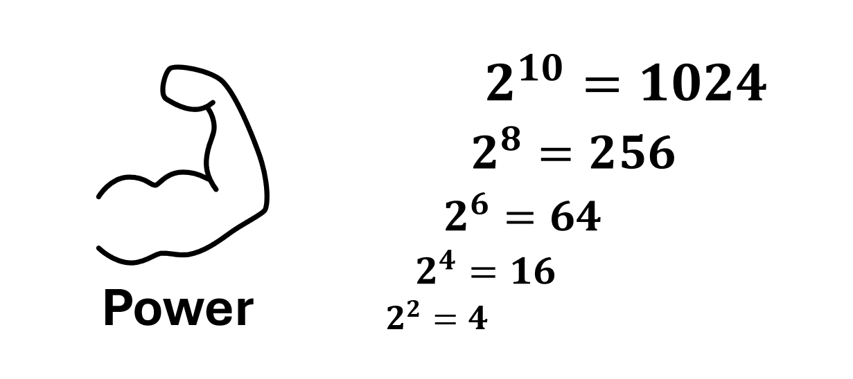 累乗は、「$2^1=2$」が「$2^10=1024$」へと一気に大きくなります。